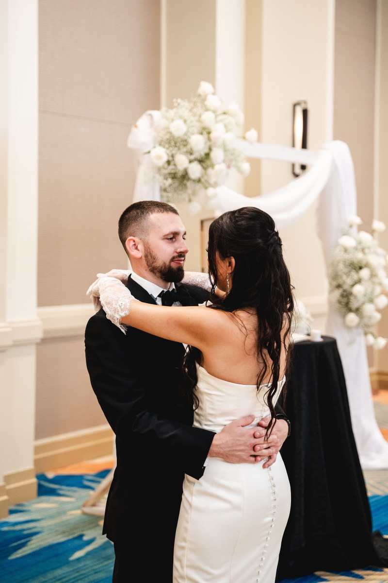 Before the ceremony, the couple shared an emotional first look in front of a Cinderella-style horse and carriage. This moment was quiet, heartfelt, and incredibly special, setting the tone for the rest of their elopement. Their indoor ceremony featured a unique unity braid, symbolizing the intertwining of their lives in a deeply personal way.