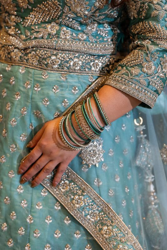 Ramsha truly stole the show in her stunning blue South Asian bridal look, featuring intricate gold sparkle details that caught the light beautifully. Derick complemented her perfectly in traditional black South Asian attire, creating a striking and elegant contrast. We absolutely loved how their Indian Bridal Wear honored cultural tradition while fitting seamlessly into the relaxed, tropical beach setting.