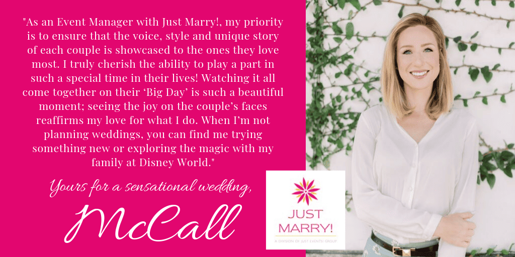 Interested in learning more about our wedding planning services or have questions about planning a last minute wedding? We’d love to welcome you into the Just Marry! family! If you’re looking for a wedding planner or would like to speak with one of us, e-mail us at info@justmarry.com and we’ll get back to you right away. We’d be happy to customize a planning option that will allow you to enjoy every moment of your planning and your wedding day!