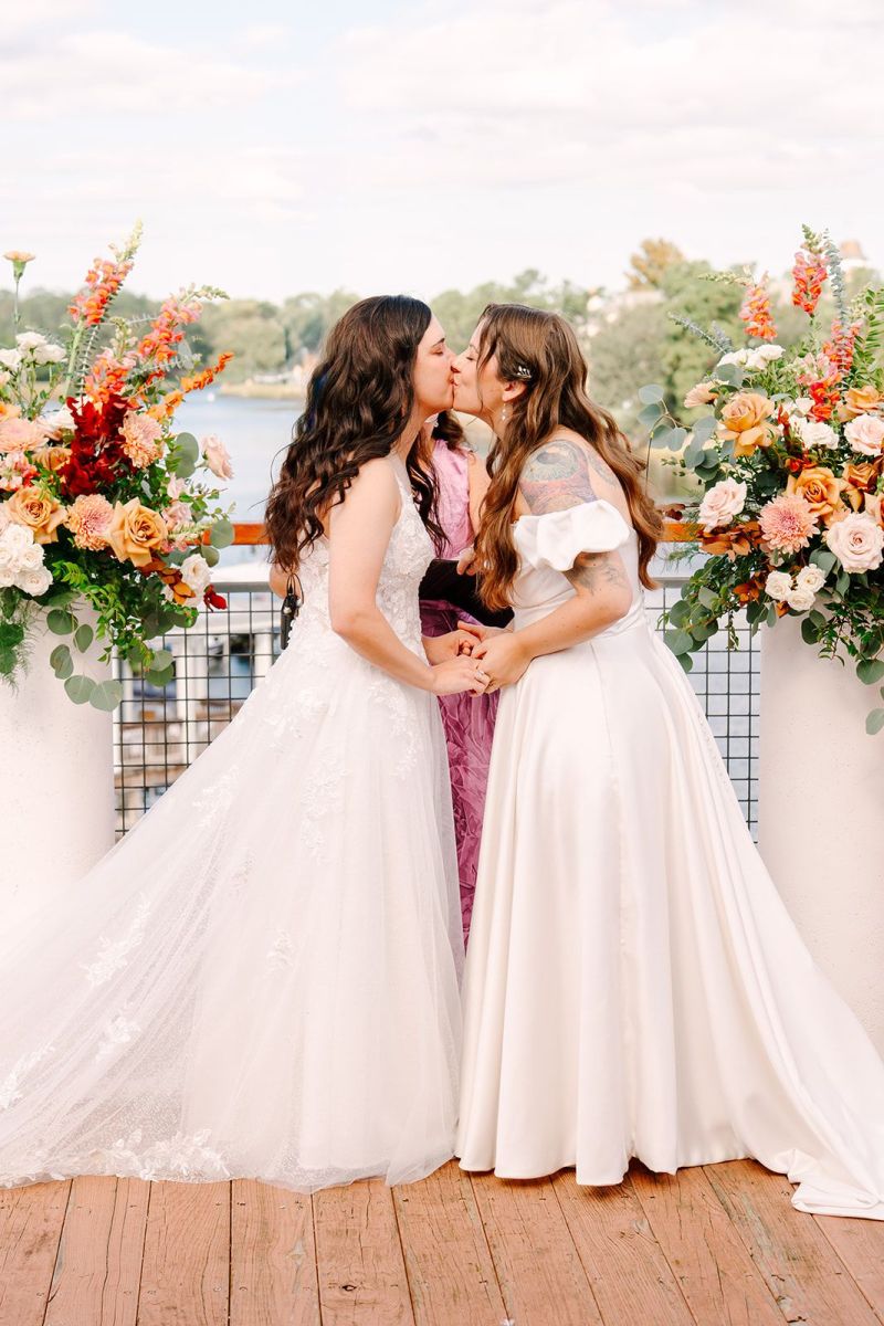 Orange wedding color ideas can create a warm, vibrant atmosphere for couples looking to embrace a bold yet romantic palette, just like Danielle and Alexandrea did for their beautiful October wedding at Paddlefish.