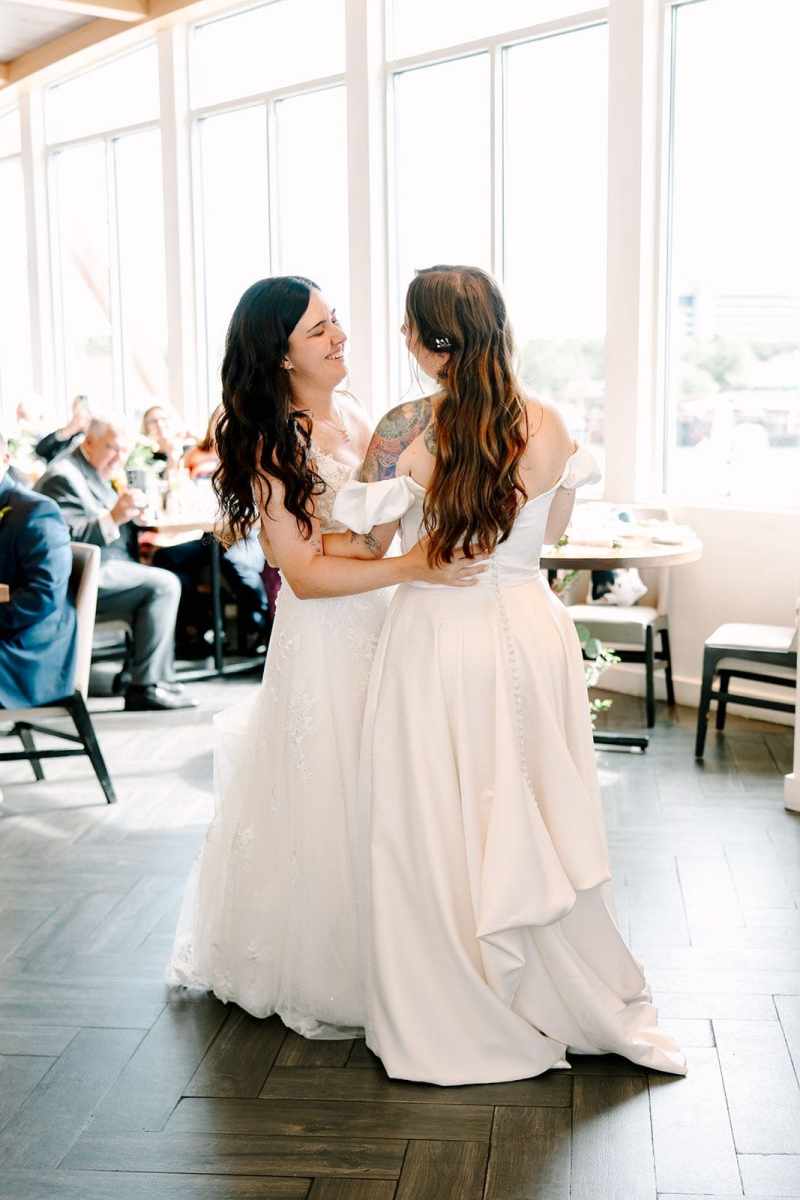 Following the ceremony, guests moved inside Paddlefish’s Market Room for a lively reception filled with great food, dancing, and plenty of celebration. Danielle and Alexandrea shared their first dance to “Forever and Always” by Shania Twain, a song that held special meaning for them. In a sweet and personal touch, the couple even wore custom sneakers with the song title written on the bottom—an unforgettable detail that perfectly captured their personalities!