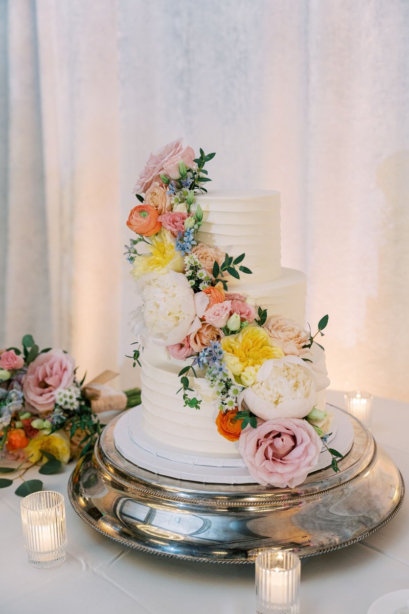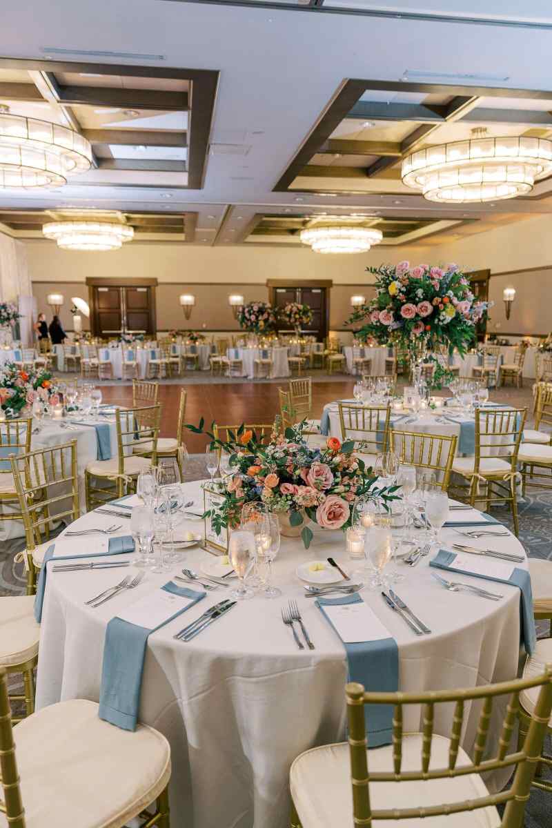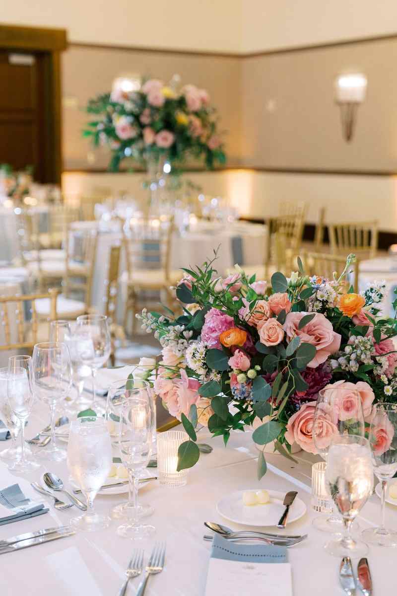 At their reception, held at The Alfond Inn, guests were greeted by alternating tall and low centerpieces filled with those same pastel florals, creating a garden-inspired atmosphere of warmth and elegance. Sentimental touches added even more heart to the day, including memorial tables with cherished photos and keepsakes from each family.