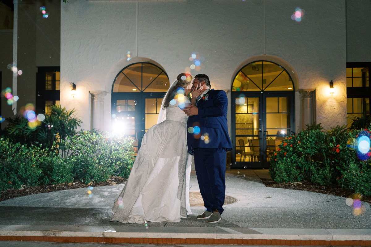 One of the most meaningful details was the couple’s heirloom cake topper from 1909, which has been passed down through generations and now holds a special place in Sarah and Phil’s story. To make the day even more personal, Sarah had a piece of her mom’s wedding dress sewn into her own gown, a beautiful way to carry her family’s love with her down the aisle. The celebration ended with a joyful bubble exit on The Alfond Inn terrace, perfectly capturing the lighthearted beauty of their spring day.