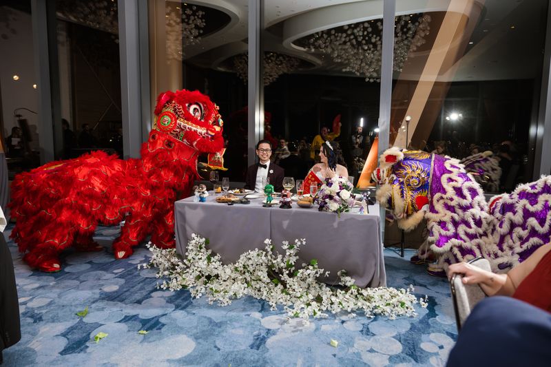 The celebration was filled with surprises that wowed their guests. One highlight was their custom matcha wedding cake, a unique and delicious twist that had everyone talking. Guests were also treated to an incredible Lion dancer performance during the reception, with vibrant music and mesmerizing choreography that left the room buzzing with excitement.