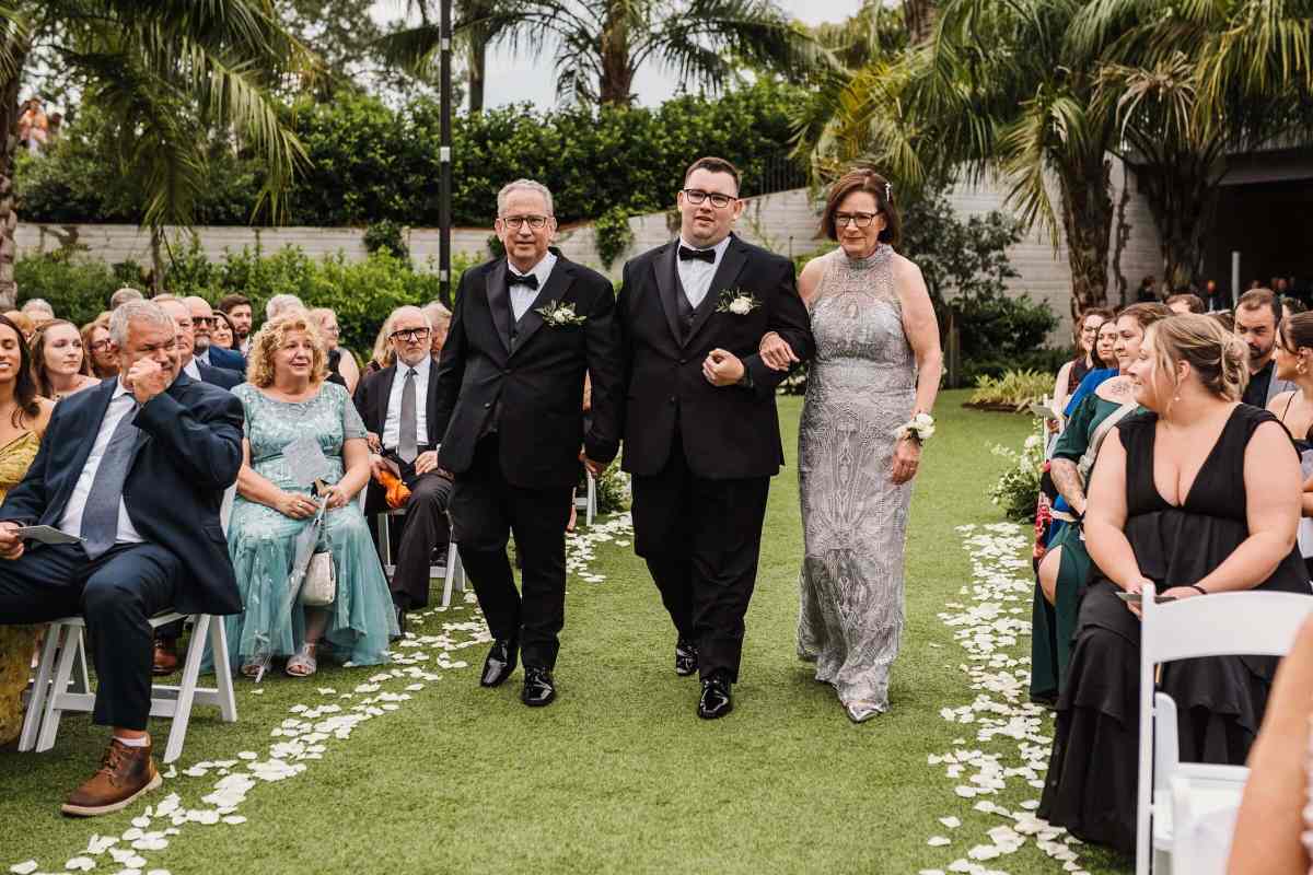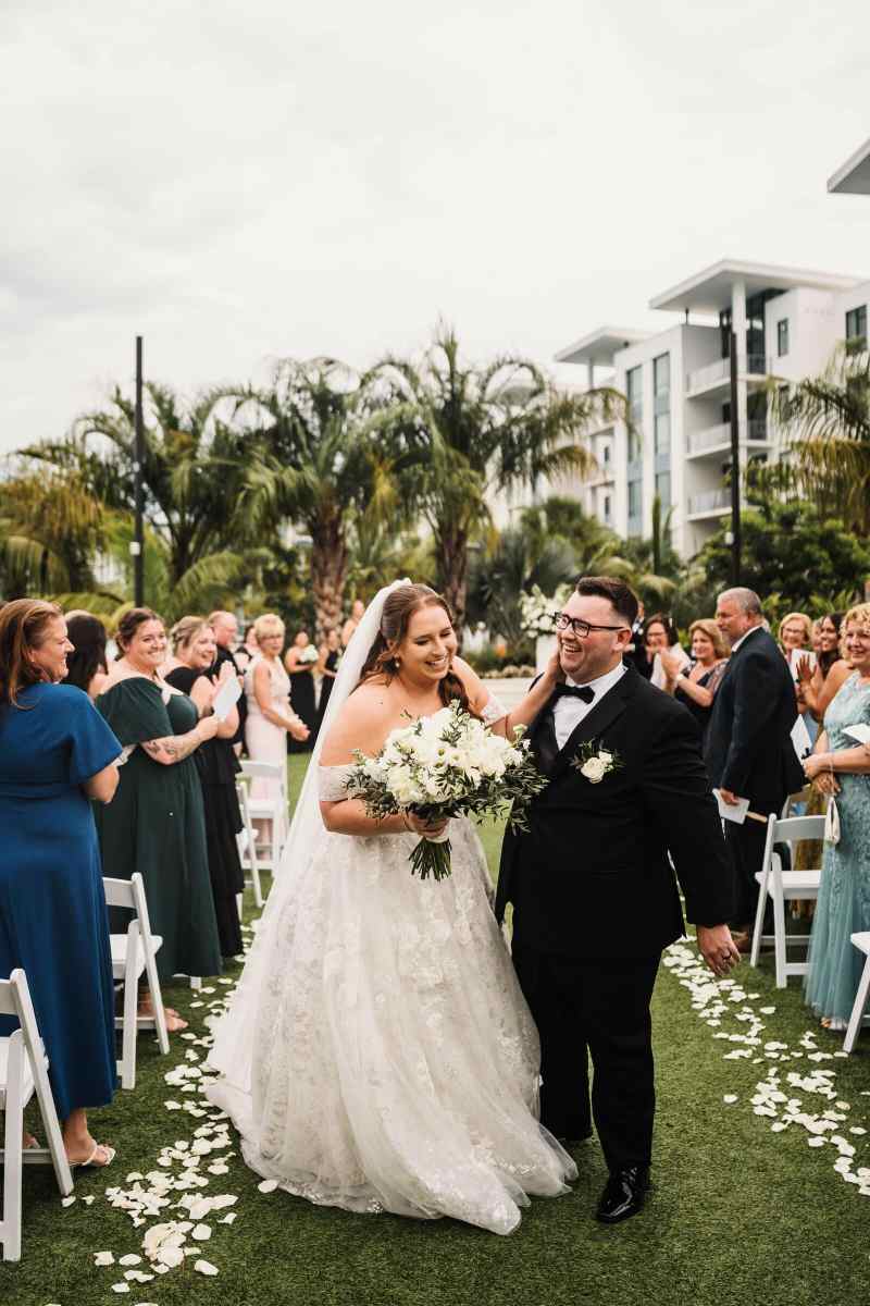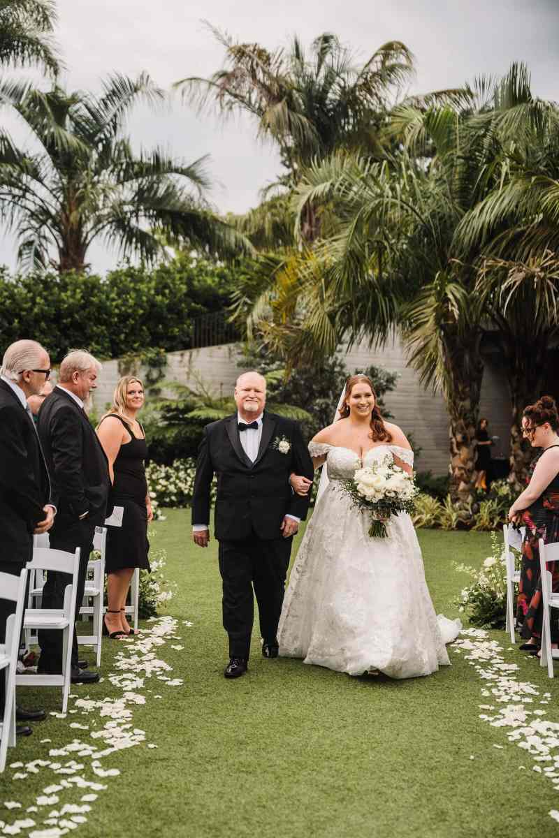 On the day of the wedding, we closely monitored the weather forecast and worked proactively with the venue to ensure clarity and confidence for the rest of the day. Coordinating the potential backup ceremony in the Magnolia Ballroom was a key factor in giving the couple peace of mind, but in the end we were able to have the ceremony outside! Additionally, escorting the bride and her father to the ceremony site via the trolley ensured she wasn’t seen by guests beforehand—preserving a special, private moment and the emotional impact of her entrance.